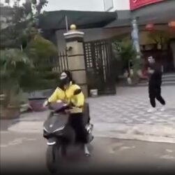 Hai người đàn ông dùng vật giống súng, mặc quần áo xe ôm công nghệ, đội mũ bảo hiểm, che …