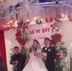 Chưa rõ mâu thuẫn gì,mà ngày cưới ném bịch mắm tôm vào tội thật Cô dâu chú rể bị ném …