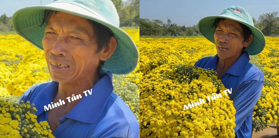 Người đàn ông trong đoạn video đang lan truyền trên mạng xã hội tên là anh Hổ, chủ một vườn hoa cúc tại Sa Đéc.