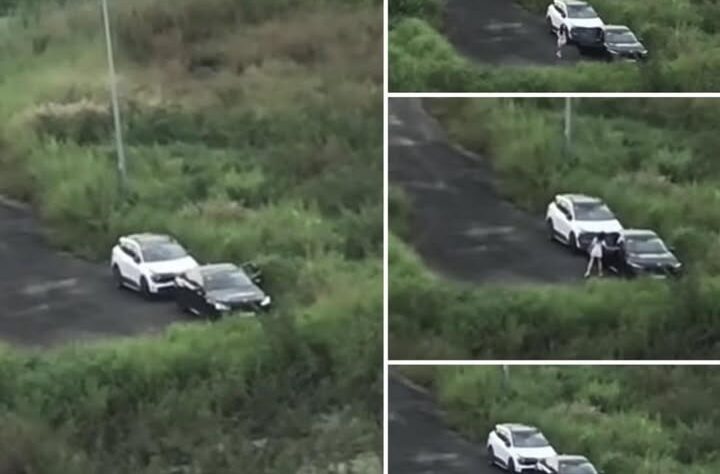 Ngày 28/11, mạng xã hội lan truyền đoạn video ghi lại cảnh hai người dừng xe giữa bãi đất trống. Trong video, người đàn ông bước xuống từ chiếc ôtô màu đen, đi vòng ra hàng ghế sau. Chỉ vài phút sau, người phụ nữ từ chiếc xe trắng phía sau cũng rời xe của mình, đến ngồi cùng hàng ghế sau chiếc xe đen.