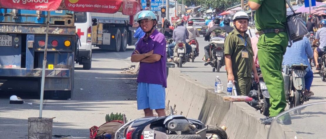 Sáng nay 14/10, nữ sinh học lớp 11 bị xe container cán c.h.ế.t trước chợ đầu mối nông sản Thủ Đức (đường Đỗ Mười, phường Tam Bình, TP.HCM).
