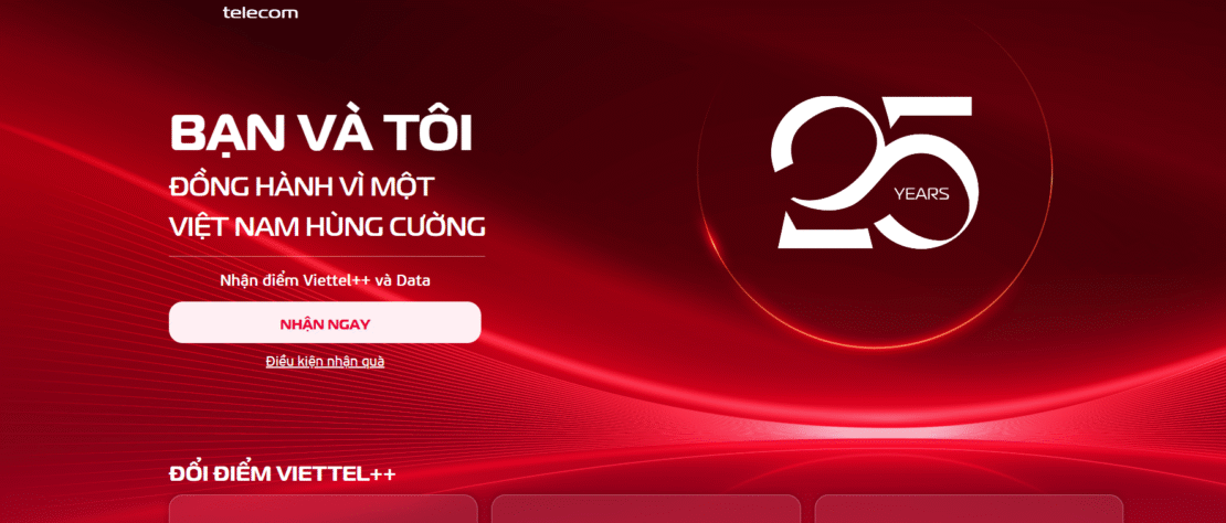 Từ 15–25/10/2025: Tặng 1.000 điểm Viettel++/năm khách hàng sử dụng các dịch vụ Viettel, tối đa 25.000 điểm, để đổi voucher Grab, Shopee, CGV, Highlands,…