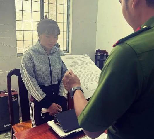 Bị can Hồng Đào tại cơ quan công an – Ảnh: Công an xã An Phú