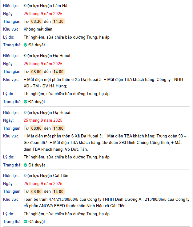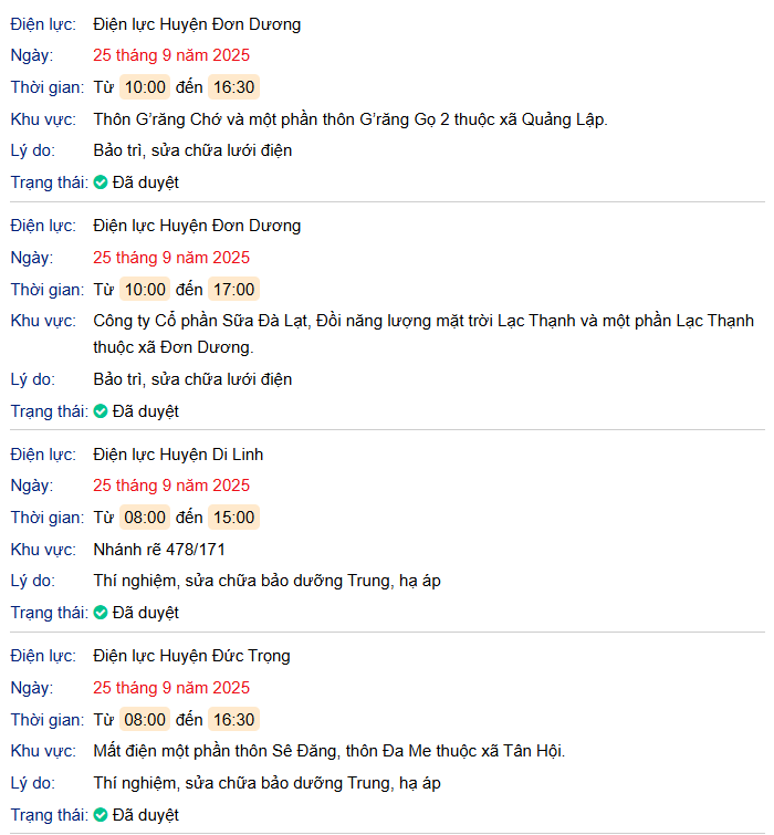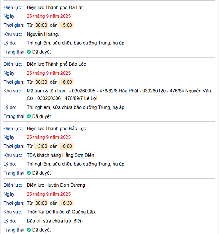 Thông báo lịch cúp điện ngày mai 25/09/2025: Lịch riêng khu vực Lâm Đồng (trước sát nhập) bởi Name NoTháng 9 24, 2025Leave a CommentThông báo lịch cúp điện ngày mai 25/09/2025: Lịch riêng khu vực Lâm Đồng (trước sát nhập)TRANG CHỦ Lịch cúp điện Lâm Đồng ngày 25/9/2025