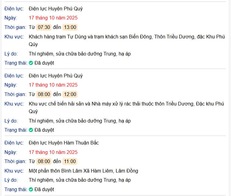 Lịch cúp điện Bình Thuận ngày 17/10/2025 bởi Name NoTháng 10 16, 2025Leave a CommentLịch cúp điện Bình Thuận ngày 17/10/2025TRANG CHỦ