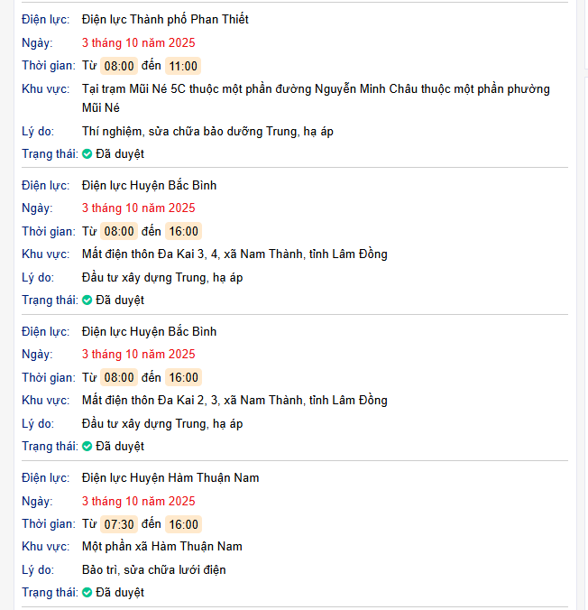 Lịch cúp điện Bình Thuận ngày 3/10/2025 bởi Name NoTháng 10 2, 2025Leave a CommentLịch cúp điện Bình Thuận ngày 3/10/2025TRANG CHỦ Lịch cúp điện Bình Thuận ngày 3/10/2025