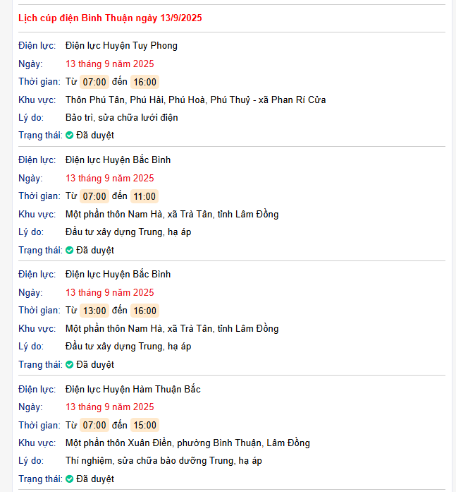 Lịch cúp điện dự kiến Bình Thuận ngày 13/9/2025 bởi Name NoTháng 9 12, 2025Leave a CommentLịch cúp điện dự kiến Bình Thuận ngày 13/9/2025TRANG CHỦ Lịch cúp điện dự kiến Bình Thuận ngày 13/9/2025