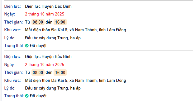 Lịch cúp điện khu vực Bình Thuận (cũ) ngày mai 02/10/2025 bởi Name NoTháng 10 1, 2025Leave a CommentLịch cúp điện khu vực Bình Thuận (cũ) ngày mai 02/10/2025TRANG CHỦ