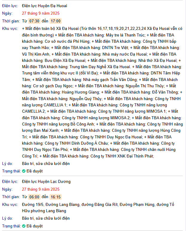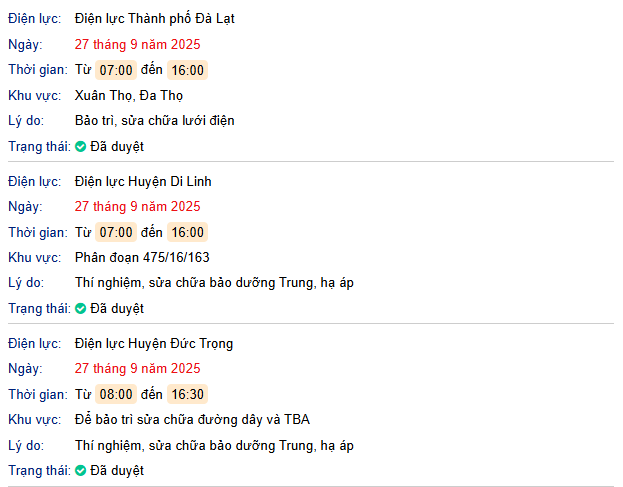 Lịch cúp điện Lâm Đồng ngày mai 27/9/2025 bởi Name NoTháng 9 26, 2025Leave a CommentLịch cúp điện Lâm Đồng ngày mai 27/9/2025TRANG CHỦ