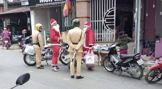 Khi đi phát quà dịp lễ Giáng sinh, cũng không ít ông già Noel gặp rắc rối, ví dụ như có thể bị cảnh sát giao thông dừng xe xử lý vi phạm.
