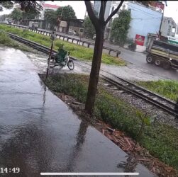 SÁNG NAY. Tiếng còi tàu rất lớn từ xa nhưng người đi xe máy mặc áo mưa dường như không …