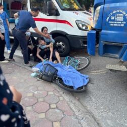 Ít phút trước tại cổng trường THCS Gia Thuỵ – Long Biên, xe tải va chạm với một em …