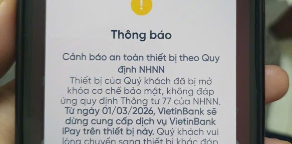 Thông tư 77/2025/TT-NHNN sẽ chính thức có hiệu lực từ ngày 1/3/2026. Kể từ thời điểm này, nếu thiết bị của khách hàng không đáp ứng các yêu cầu bảo mật hoặc xuất hiện những dấu hiệu mất an toàn nêu trên, các ứng dụng ngân hàng trực tuyến như VCB Digibank, BIDV Smart Banking, VietinBank iPay, Agribank E-Mobile Banking… sẽ tự động thoát hoặc ngừng hoạt động, khiến các giao dịch như chuyển khoản, nạp – rút tiền có thể bị gián đoạn.