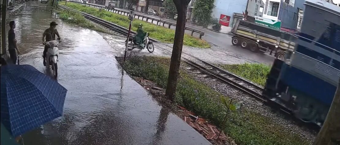 Theo camera nhà dân ven đường tàu ghi lại, vụ va chạm khiến một người phụ nữ điều khiển xe máy bị thương, xảy ra vào khoảng 6h14p sáng nay ngày 25/9 tại Phố Trang, Lạng Giang, Bắc Giang cũ (nay là tỉnh Bắc Ninh). Tại thời điểm xảy ra sự việc, khu vực này đang có mưa to do ảnh hưởng của bão số 9 Ragasa.
