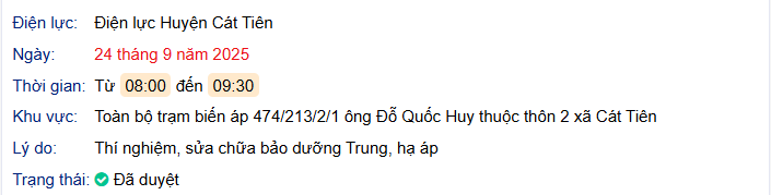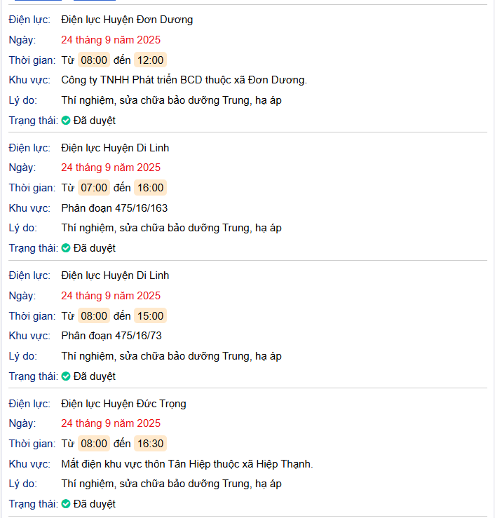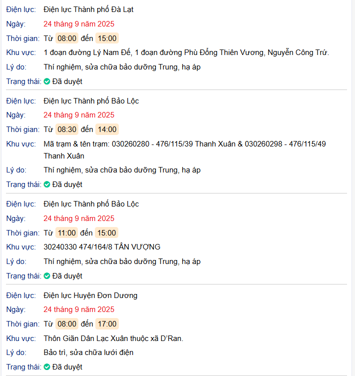 Thông báo lịch cúp điện ngày mai 24/09/2025: Lịch riêng khu vực Lâm Đồng (trước sát nhập) bởi Name NoTháng 9 23, 2025Leave a CommentThông báo lịch cúp điện ngày mai 24/09/2025: Lịch riêng khu vực Lâm Đồng (trước sát nhập)TRANG CHỦ Lịch cúp điện Lâm Đồng ngày 24/9/2025