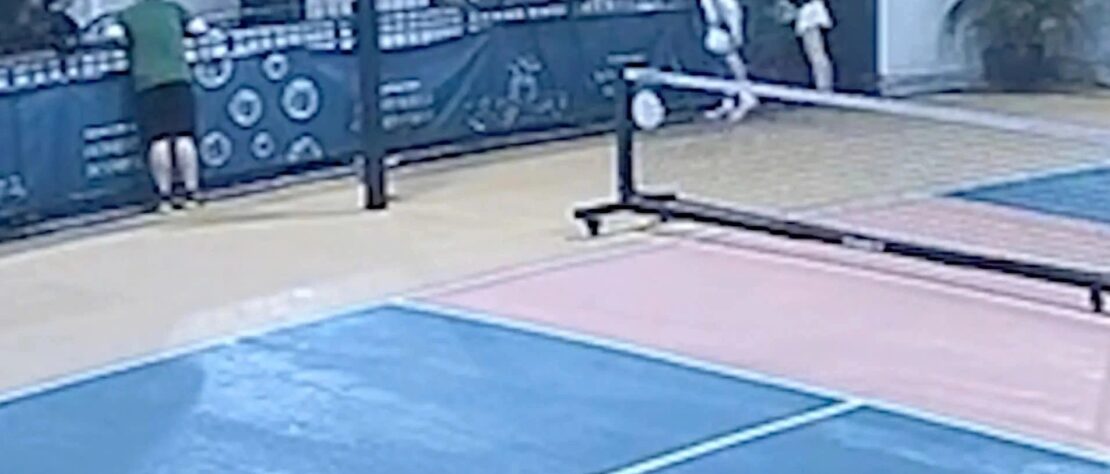 Đoạn clip ghi lại cho thấy anh ta nhảy lên lưới che khoảng trống để nhặt lại quả bóng pickleball. Chiếc lưới sau đó bị rách vì sức nặng khiến người đàn ông rơi từ tầng 3 xuống đất. Những người chơi khác lập tức chạy xuống tầng trệt, nơi họ phát hiện người đàn ông này đã tử vong.