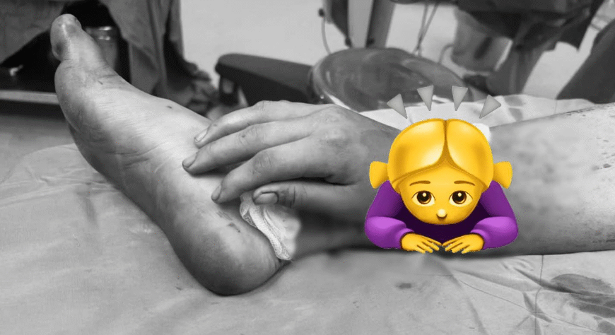 Bàn tay của bệnh nhân được các bác sĩ ghép tạm vào chân sau ca mổ kéo dài nhiều giờ đồng hồ (Ảnh: BV).
