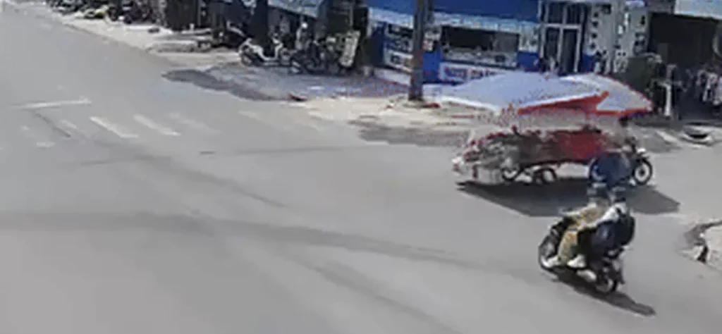Theo dữ liệu camera an ninh, xe máy do anh Nguyễn Vũ L. điều khiển chở theo chị Nguyễn Thị Yến L., khi băng qua ngã tư đã tông vào xe máy do bà Trần Thị G. điều khiển, chở theo con trai ngồi phía sau.