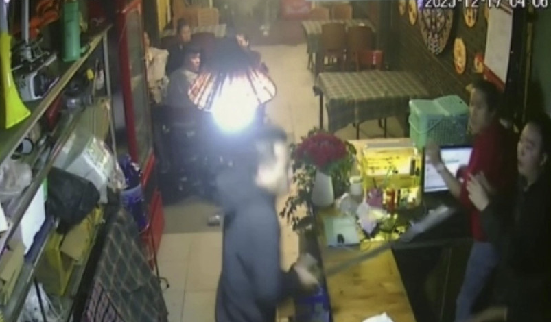 Các đối tượng xông vào khu vực quầy của quán nhậu rồi đâm, chém liên tiếp vào nhiều người, trong đó có nhân viên quán.